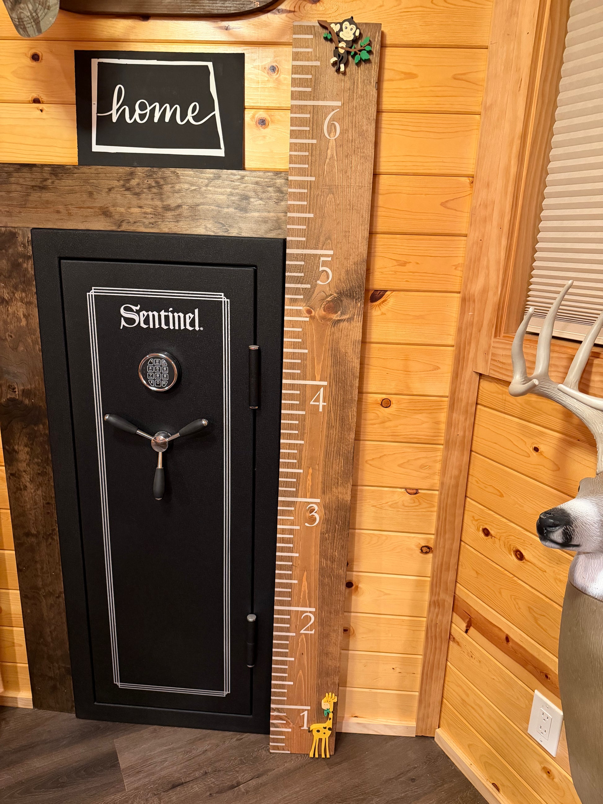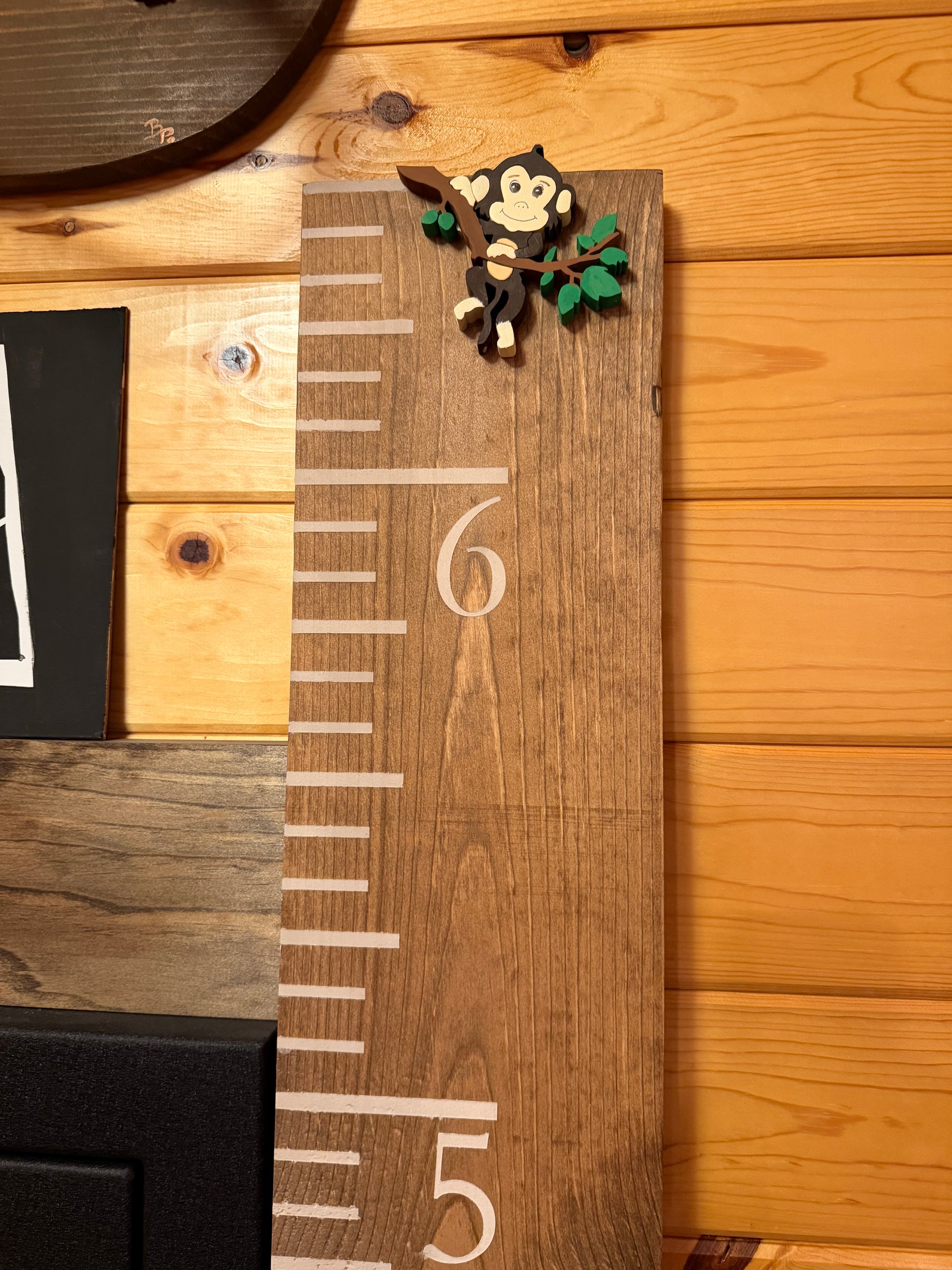 Track your little one’s milestones with this charming growth ruler! The giraffe and monkey are scroll-sawed by hand and painted with care, bringing a fun jungle theme to any nursery or playroom. Add your child’s name for a personalized touch. Makes a great gift too!